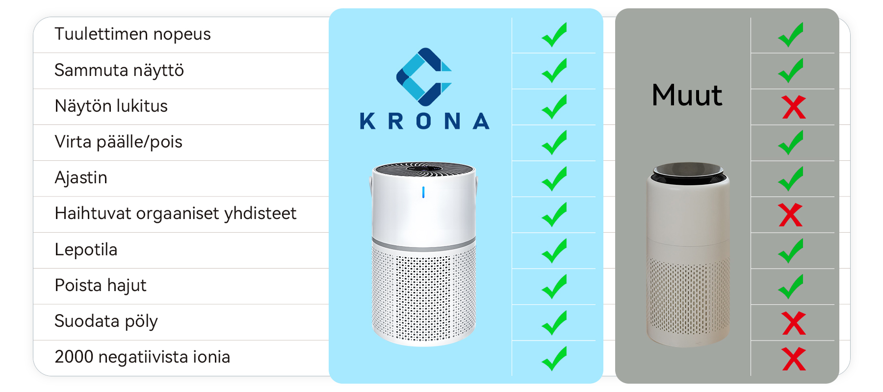 Krona-ilmanpuhdistin: Tehokas, älykäs ja tyylikäs – vertaansa vailla olevaa puhtautta ja mukavuutta!